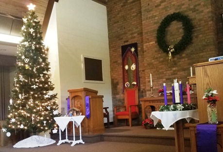 Church Decorated for Christmas |